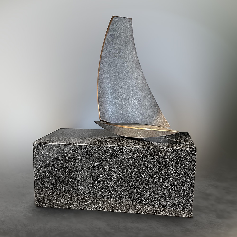 Urn graniet met bronzen zeilboot