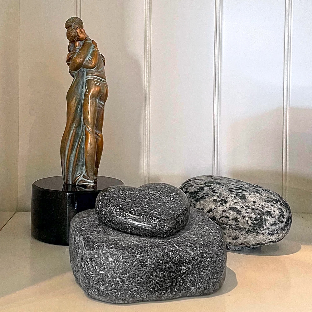 Urn graniet met bronzen liefdespaar