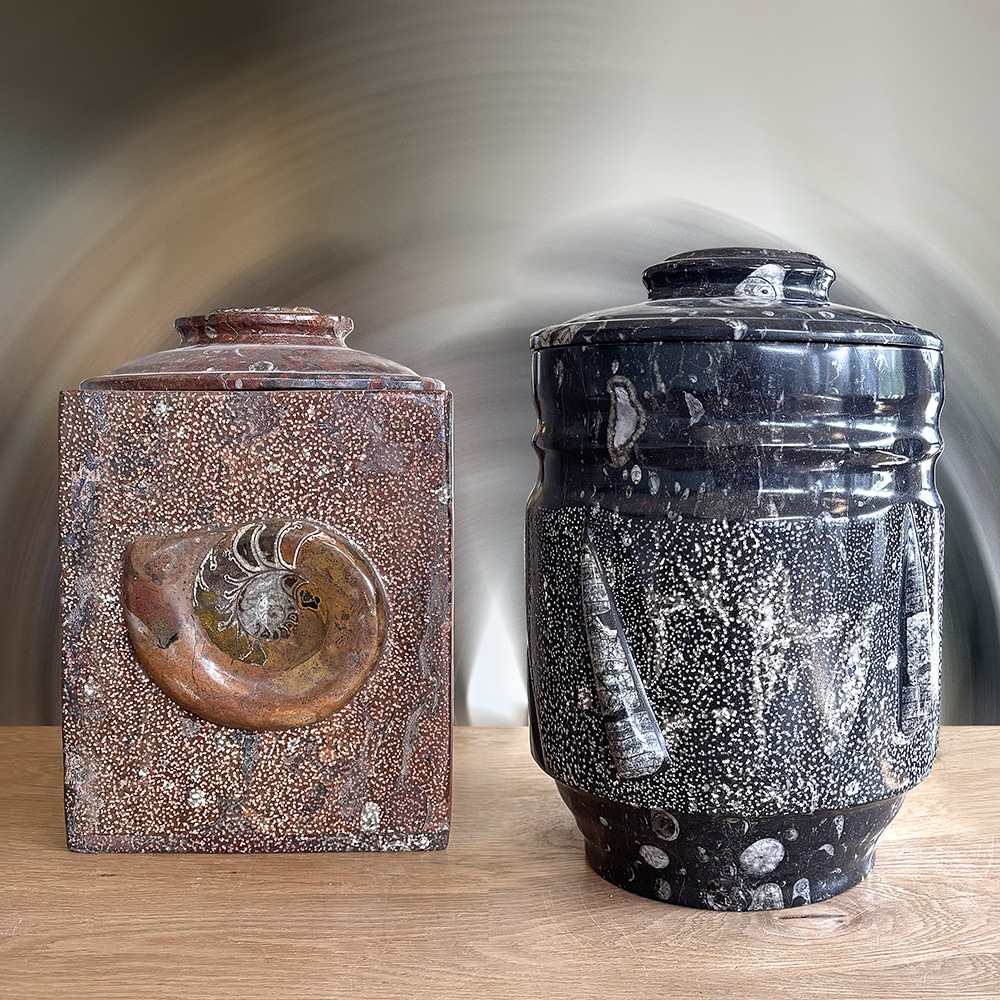 Urn fossielen ammoniet en orthoceras