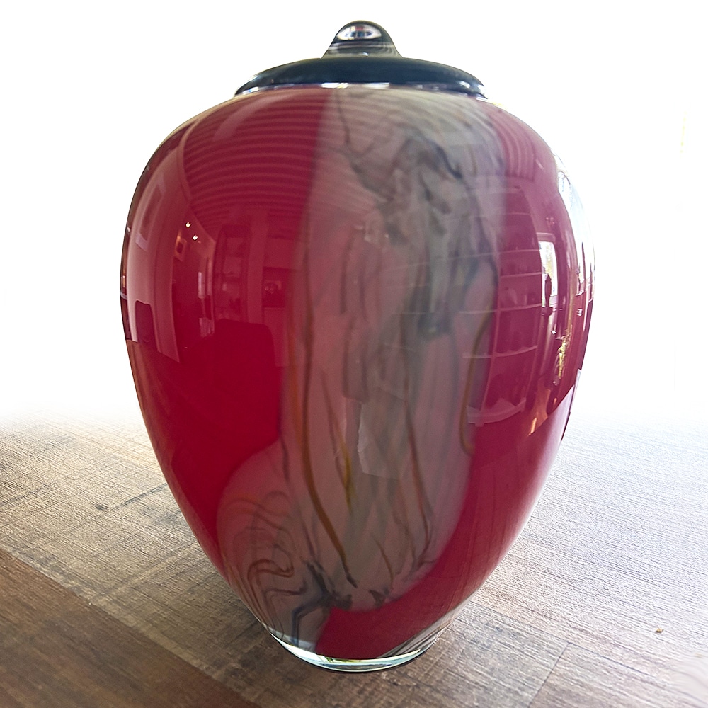 Urn glas rood wit en transparant