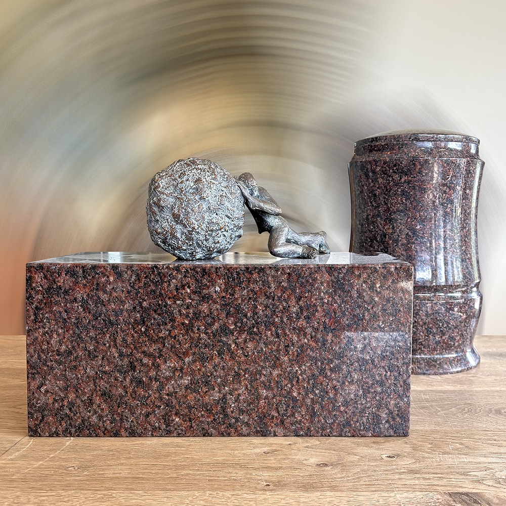 Urn Hazelnut brown met bronzen beeld