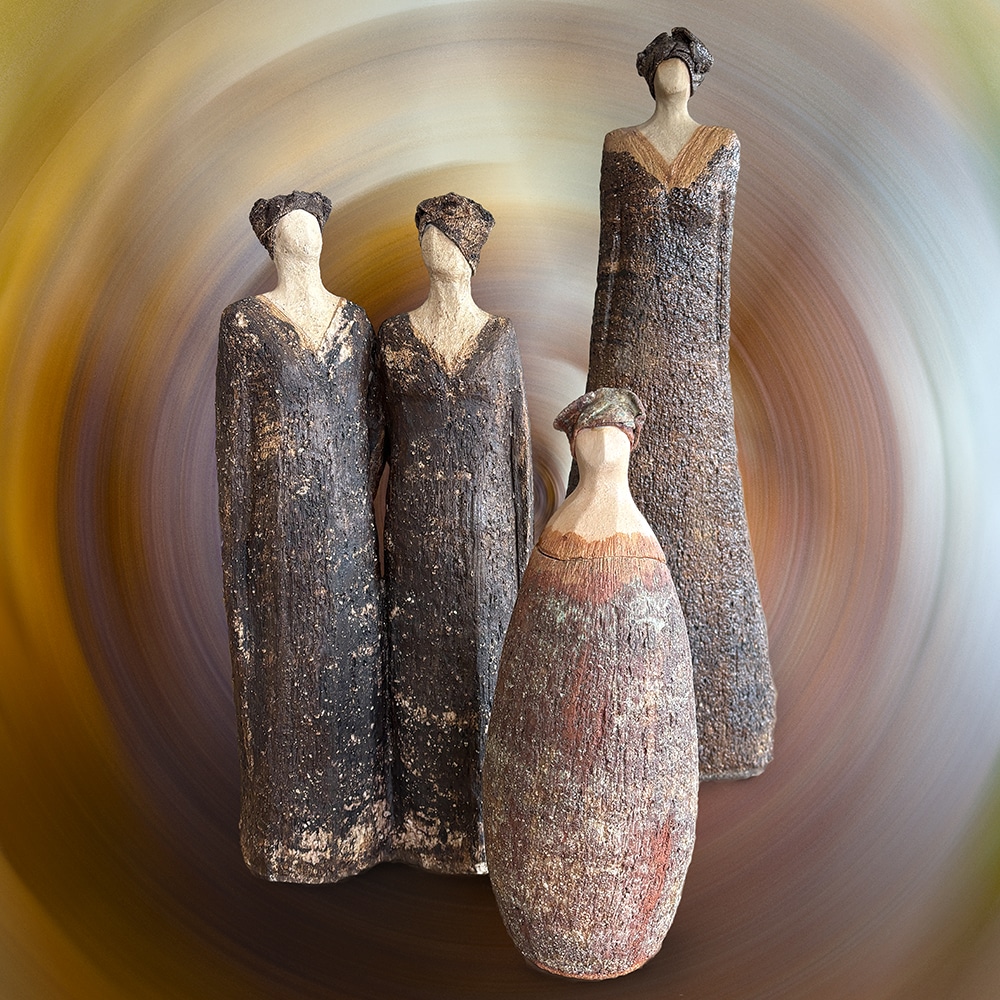 URN HAZELNUT BROWN MET BRONZEN BEELD